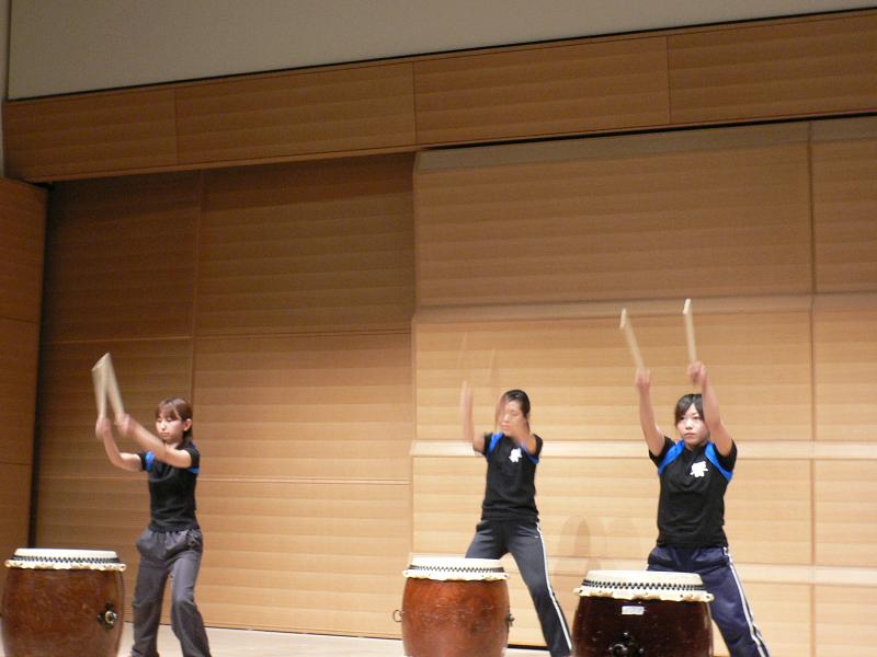 右の写真は金曜日遅いクラスの前半締太鼓の演目。