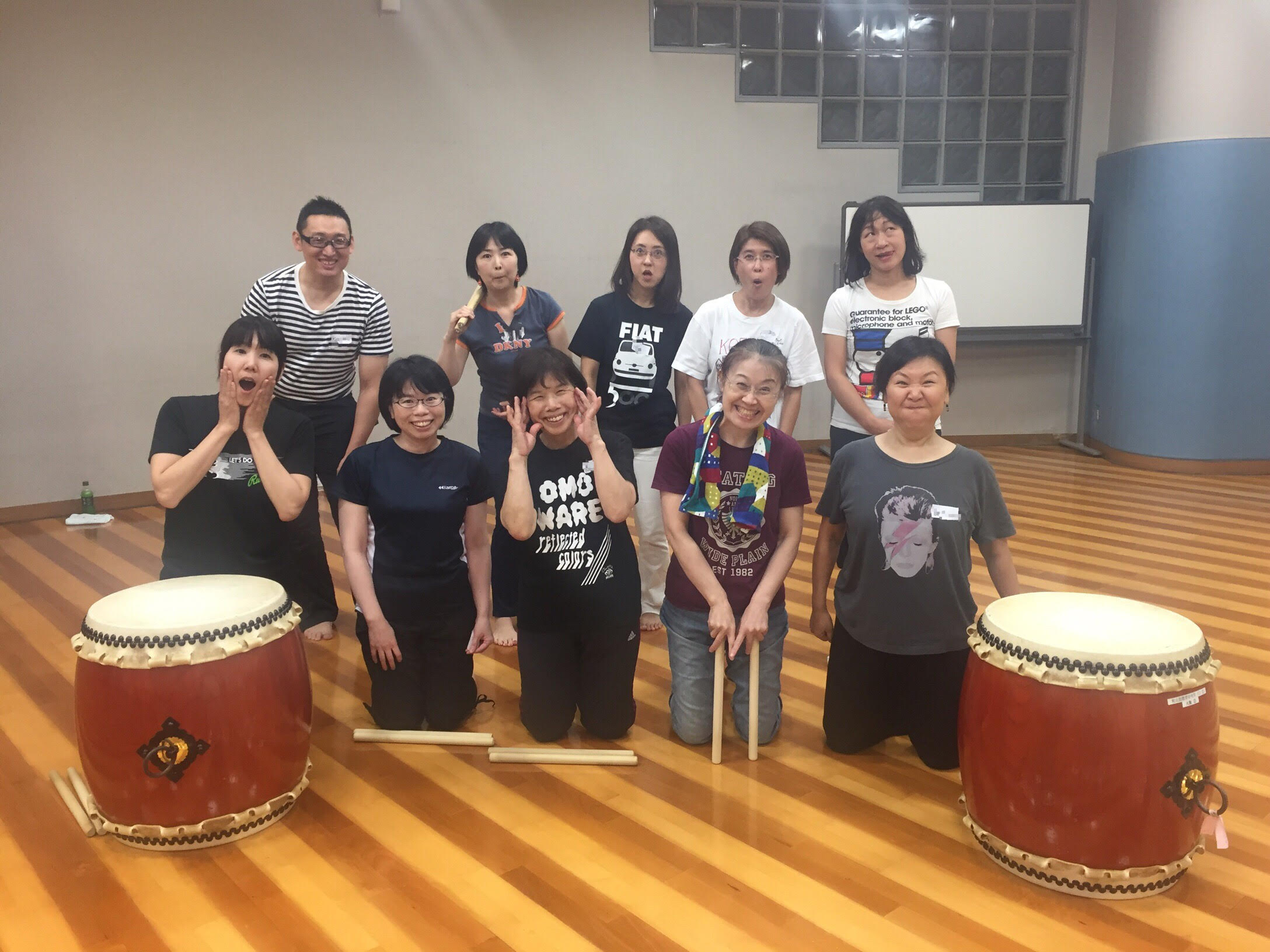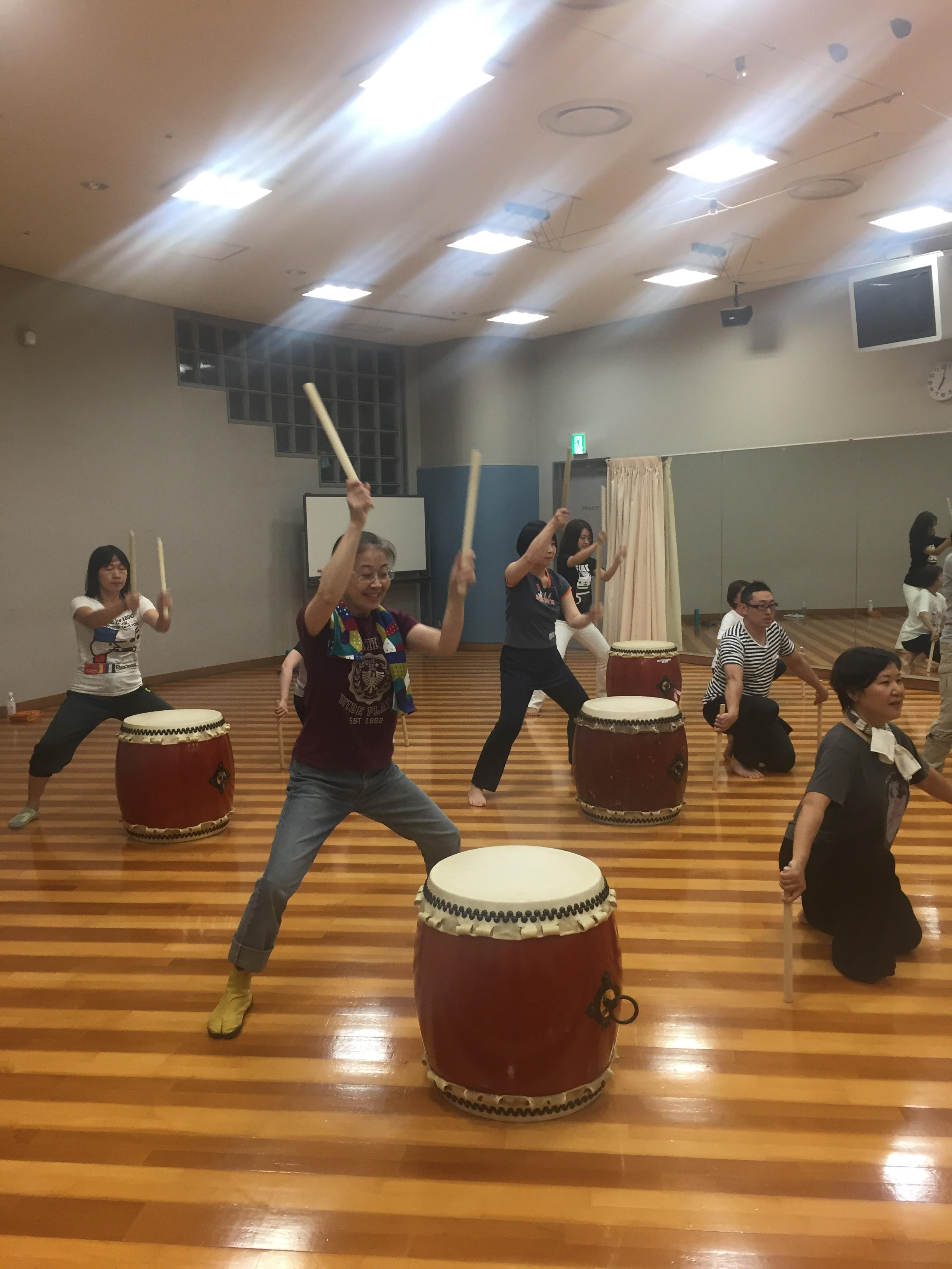 まだ2回しかレッスンしていないのですが、初めましての方も和太鼓を一緒にたたくとすぐにうちとけ、笑顔がたくさん♪
