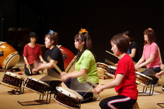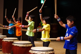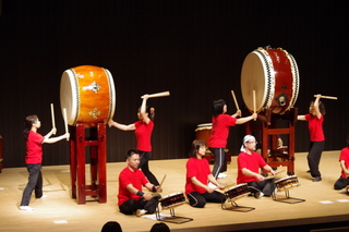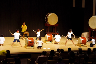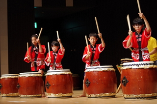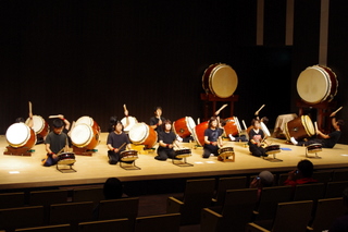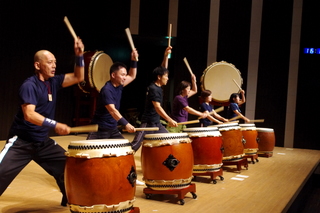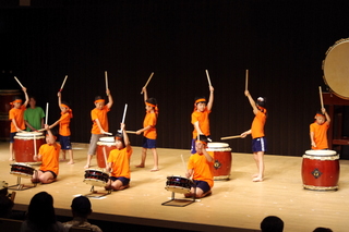 4人で5台の太鼓をあっちこっちとたたいた演目。