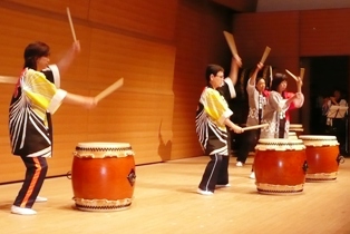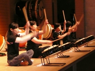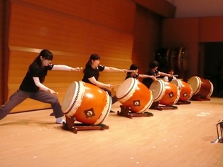 長胴太鼓横打ちと締太鼓座奏で