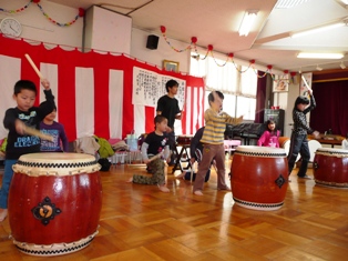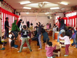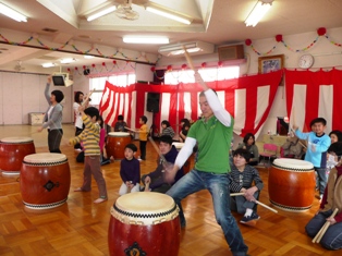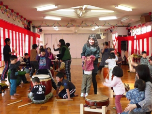 とてもにぎわい、子ども達、親子で和太鼓を打つ機会になりました。