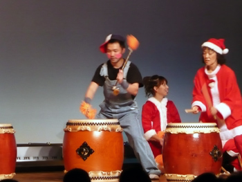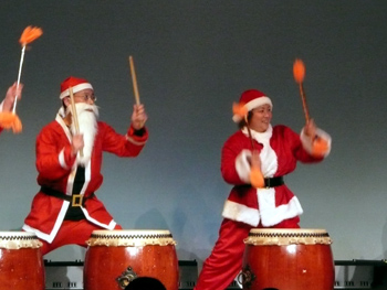 霜月だけどもうクリスマスだっ!とサンタさんで太鼓をたたく