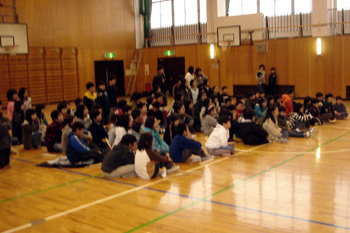 全校生徒、6年生の保護者や地域の方々が見に来られている中