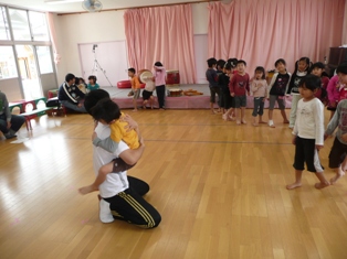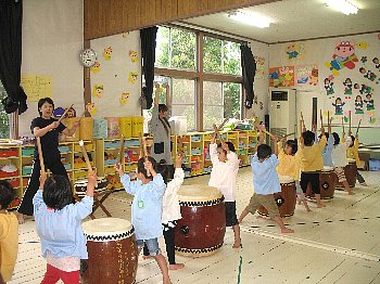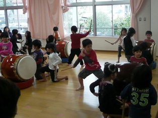 5歳児さんは「どんつく」こと三宅太鼓を。