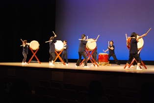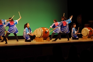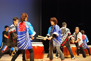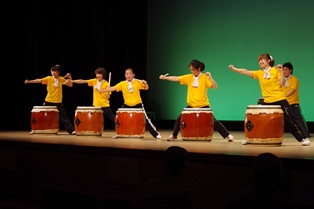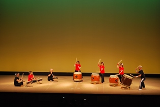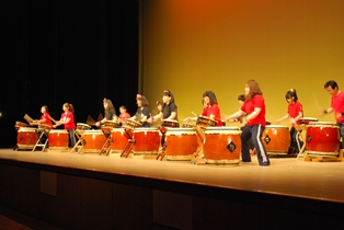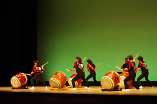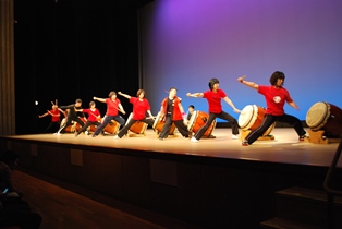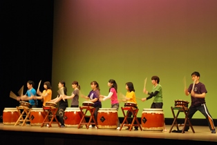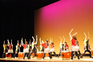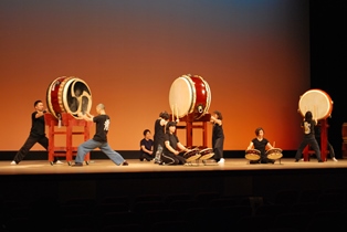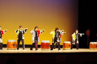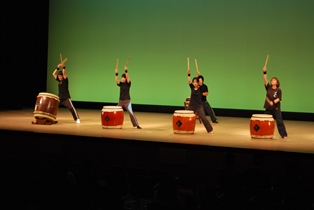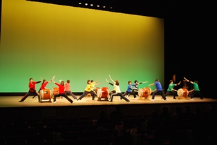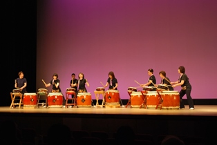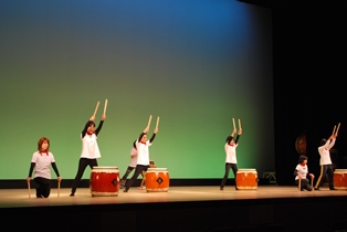 舞台の上下に太鼓を並べ、締太鼓・長胴太鼓共に見せ場がある演目を奏でた