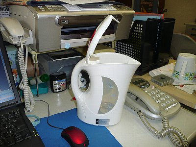 湯沸かし器は簡易式。ポットのフタはあってないようなもの。