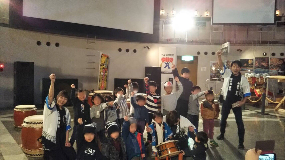 「ちょうさ会館」は観音寺市地域の秋祭りで使用される大きなおみこし(太鼓台)が展示されておりその横のスペースで和太鼓体験!